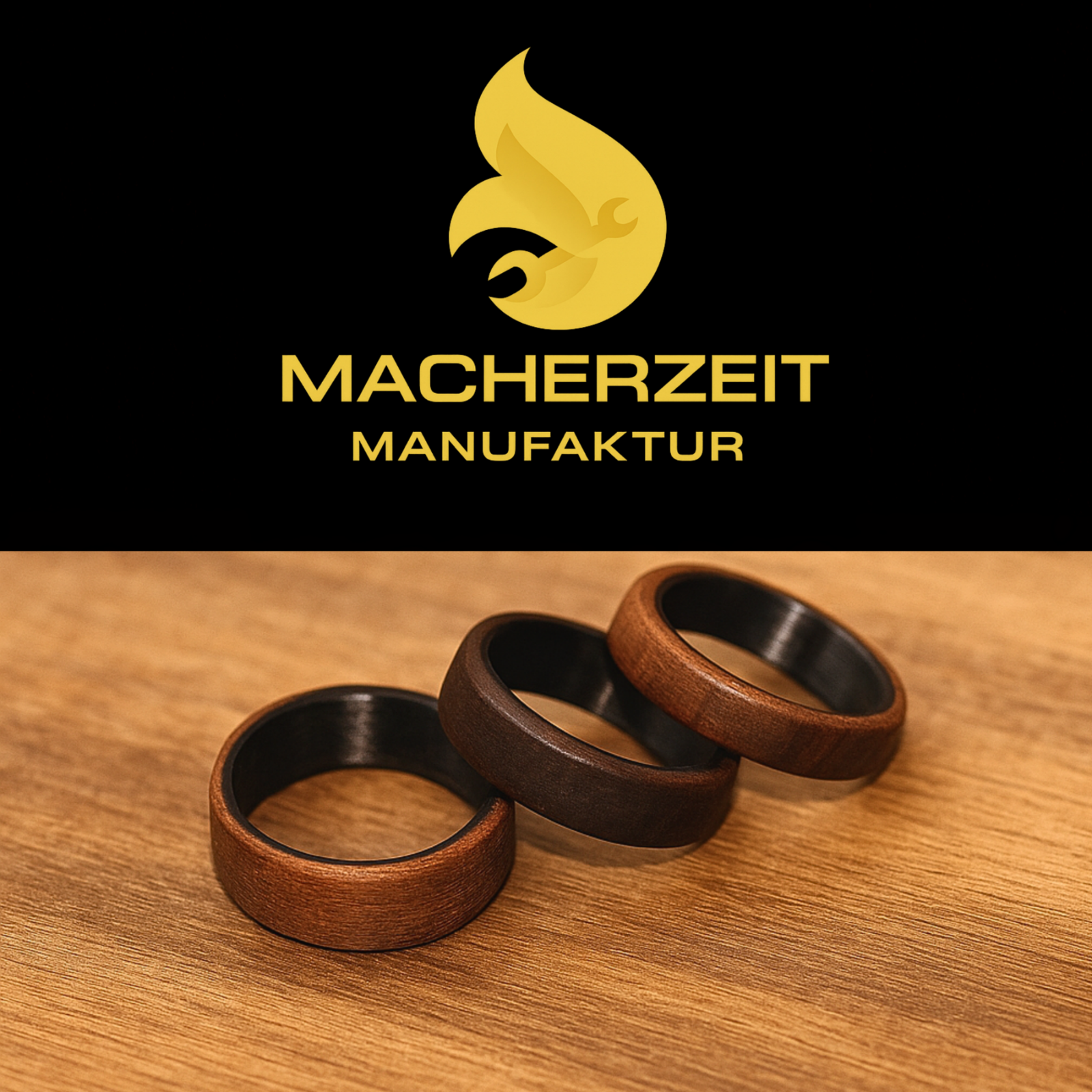 Aus unserer Marke MACHERZEIT ist nun die MACHERZEIT MANUFAKTUR hervorgegangen. In unserer kleinen Manufaktur stellen wir hier hochwertige Ringe aus einzigartigen Holz und edlen Materialien her. Gefertigt wird in der grünen Mitte Deutschlands und Europa. Schaut euch gerne genauer um in unserer ausführlichen Vorstellung. Ihr könnt natürlich auch nach wie vor unsere Bekleidung kaufen, die auch in Deutschland bedruckt wird.