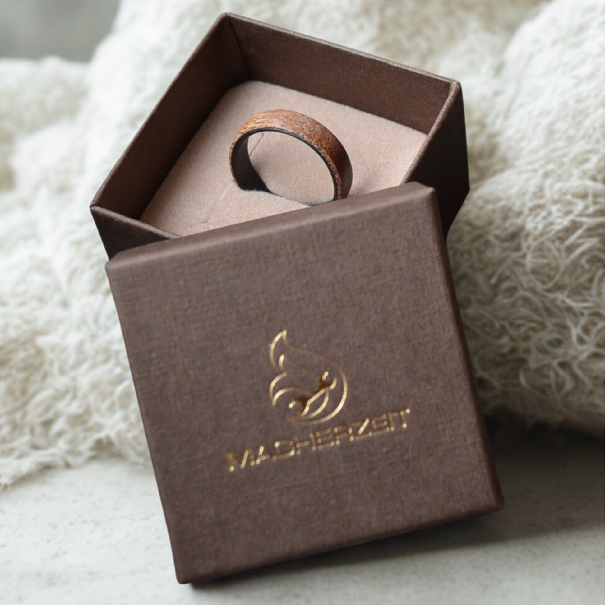 In unserer kleinen Manufaktur im Herzen Deutschlands entsteht dieser besondere Ring aus einer harmonischen Kombination von echtem Eichenholz und widerstandsfähigem Carbon. Jeder Ring wird einzeln gefertigt und mehrfach fein geschliffen, anschließend mit natürlichem Holzöl versiegelt und mit Naturwachs poliert. Das Ergebnis ist eine seidenglänzende, warme Oberfläche, die sich natürlich anfühlt und zugleich langlebig ist.