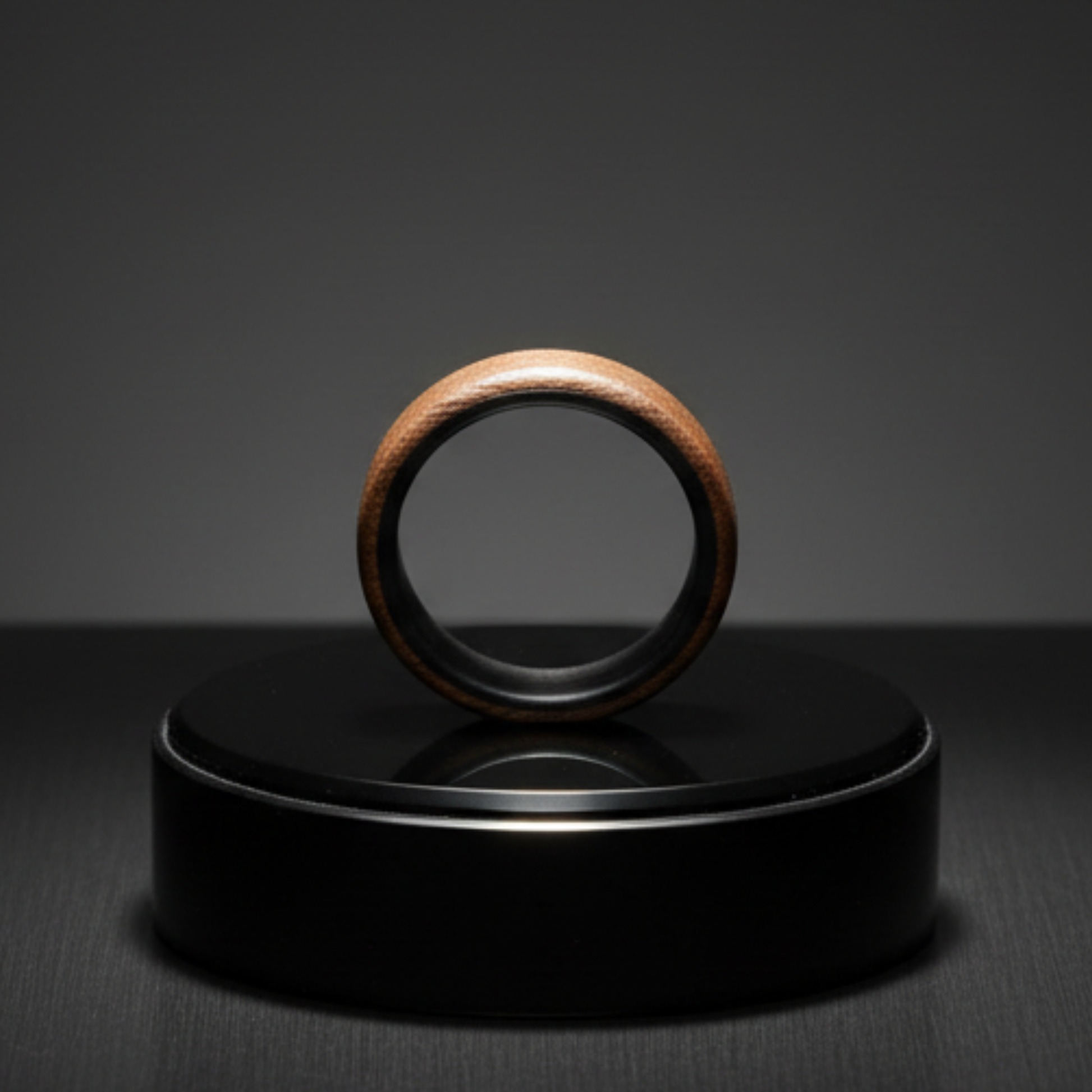 Dieser handgemachte Holzring vereint zwei außergewöhnliche Materialien: Nussbaum Echtholz außen und Carbon im Inneren.